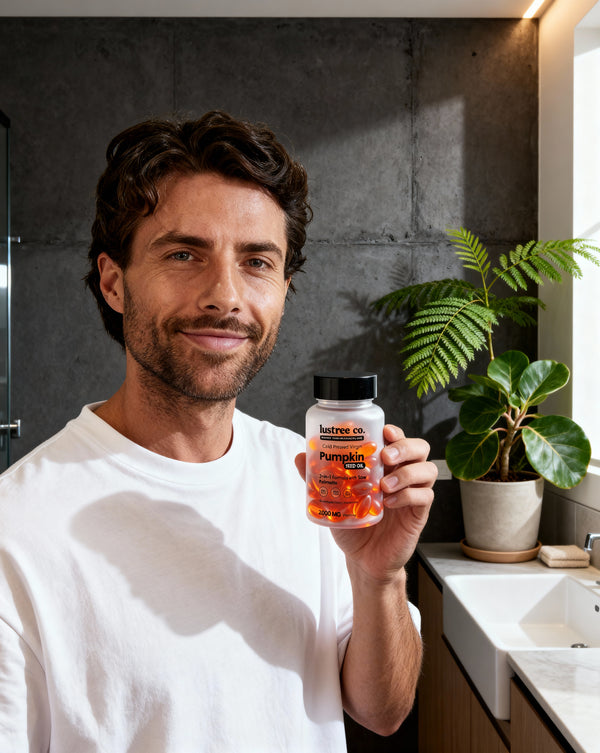 Our Pumpkin Seed Oil Softgels are supported by scientific research to block DHT, the hormone responsible for hair thinning. Rich in zinc, omega-6 fatty acids, and antioxidants, they nourish the scalp, reduce shedding, and support regrowth naturally.